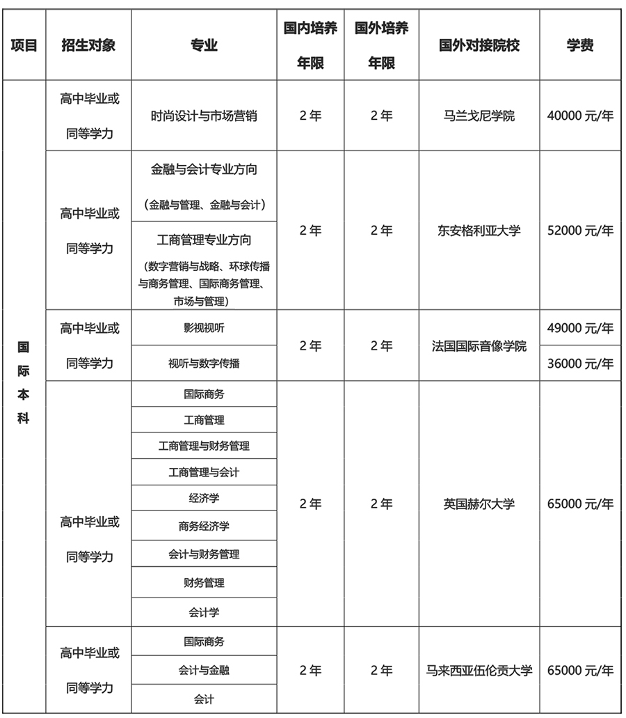 培养模式:国际本科【国内2年,国外2年】