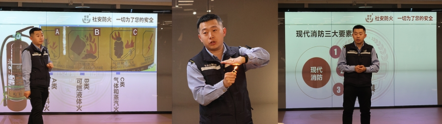 本次培训特邀消防领域专业讲师授课。讲师结合近年来国内典型火灾案例,以图文并茂、现场讲解的方式,生动剖析了火灾发生的原因、危害以及常见火灾隐患的排查要点。重点围绕办公区域、居民楼等场所的消防安全注意事项,详细讲解了灭火器、消防栓、灭火毯等常用消防器材的正确使用方法、日常维护保养知识,以及火灾初期的扑救技巧、疏散逃生的原则和方法。